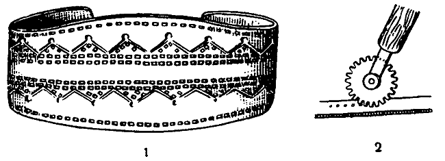 Рис. 30. Чеканка зубчатым колесиком.