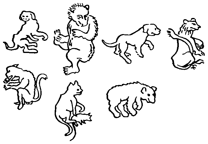 Рис. 54. Пририсовки зверей на полях, связанные со скрипторием Мстислава.