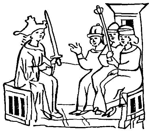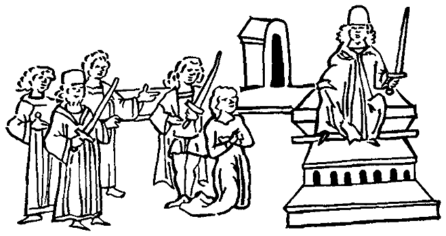 Рис. 65. Михаил Юрьевич и его брат Всеволод судят участника (участницу?) заговора. 1176 г.