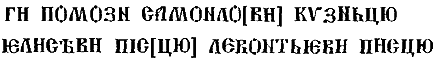 Подписи трех мастеров есть на кованом медном ларце, хранящемся в Кракове. Ларец украшен гравированными изображениями разных святых и сценами из жития Кузьмы и Демьяна. Дата – XIV в.; место изготовления, возможно, Новгород. В палеографическом отношении интересно частое применение лигатур. На крышке ларца подписи:
