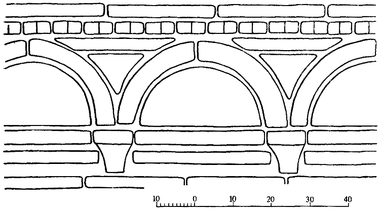 Рис. 23. Теоретический чертеж аркатурного пояса Елецкой церкви XII в. в Чернигове (по «вавилону»).