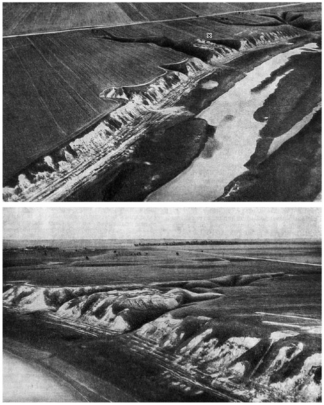 Южная Белоруссия обладает многими природными богатствами. Полноводный обильный рыбой Днепр, густые изобилующие дичью леса, хорошие пастбища, позволяющие заниматься скотоводством и, несмотря на влажный климат и песчанистые почвы, возможности заниматься земледелием – вот источники, обеспечивающие существование здесь человека. Левобережье Днепра южнее г. Речицы богато лесными массивами. Правый берег, более высокий, в настоящее время почти лишен лесов. Однако еще в недавние времена, по воспоминаниям старожилов, отдельные участки и в особенности склоны берега были покрыты сплошным кустарником. Здесь на правобережье расположены обширные луга и поодаль от реки на первой надпойменной террасе – пашни. На крутом берегу, примерно в 1 км от нынешней дер. Велин и в 500 м от дер. Колочин, расположено описываемое городище Колочин I (рис. 1, 2). Городище отделяет от Днепра пойма шириной не менее 1 км, если двигаться от него в северо-восточном направлении, и около 2 км, если идти на север. Пойма между городищем и руслом реки местами заболочена. Под самым городищем протекает ручей, являющийся рукавом Днепра, непересыхающий даже летом, поскольку его питают ключи. Таким образом, в самые засушливые годы население, жившее на высоком коренном берегу, не нуждалось в воде. Кроме того, по протоку можно выехать в Днепр. Незаметное с реки городище, расположенное на высоком месте, давало возможность его населению следить за днепровским водным путем, фиксируя тотчас же приближение незнакомых лодок. Сама природа сделала мысовую площадку городища труднодоступной для неприятеля. Крутой берег высотой около 15–20 м с севера, со стороны реки; глубокий обрывистый овраг шириной не менее 40 м с востока и ложбина с резко понижающимся дном с запада – таковы естественные укрепления городища. Насыпные валы и, возможно, эскарпирование склонов сделали из городища серьезную крепость. На снимке, произведенном с вертолета, отлично видна ситуация, в которой был расположен памятник (рис. 2).