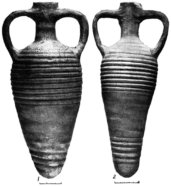 1 – амфора с горы Киселевки; 2 – амфора, найденная у берега р. Днепра.
