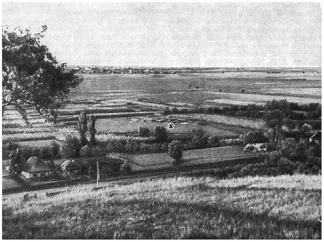 Рис. 1. Вид на урочище Молочарня (X – местоположение древнего селища).