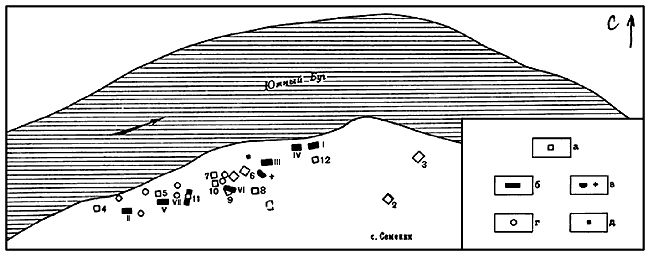 1, 4–6 – Семенки; 2, 3 – Самчинцы.