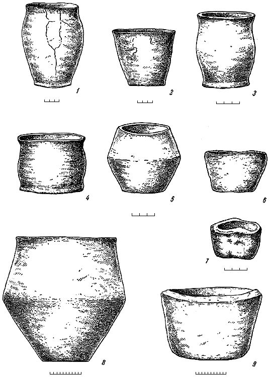 Рис. 5. Лепные сосуды с поселения Семенки (1–9).