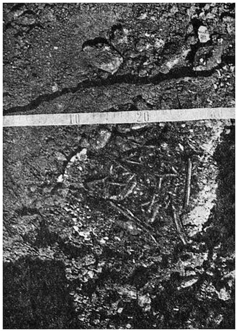 Рис. 11. Остатки тростниковой подстилки на полу в жилище 8.