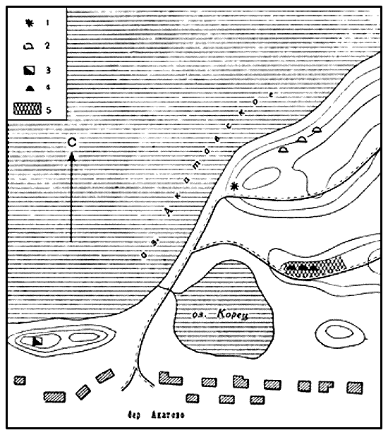 Рис. 7. Схема расположения археологических памятников у дер. Акатово.