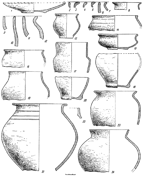 Рис. 2. Лепная и гончарная керамика (1-24).