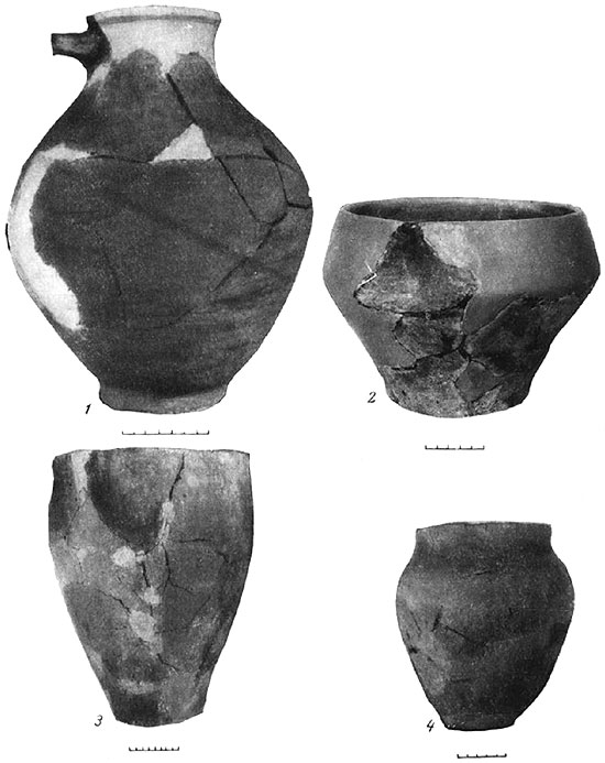 1 – гончарный кувшин; 2–4 – лепные сосуды.