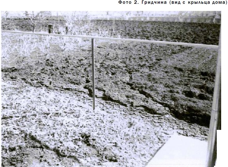 Виталий Гридчин, о котором мне приятно вспомнить еще раз, в качестве технологических культур предпочитает кормовые крестоцветные. Например, осенью 2007 года его «фавориткой» была белая горчица. Ею были засеяны огороды и у него, и у сестры, и у зятя. А огород у соседа был истерзан, как водится, зяблевой вспашкой. И вот что мы видим весной (см. фото 2). На огороде Виталия лежит «одеяло», готовое к посадке картошки «под палку», а за забором за одну (!) зиму зародился хрестоматийный овраг. Уцелели у соседа лишь замульчированные и скрепленные корнями грядки чеснока. Фотография века! Невозможно придумать более наглядное пособие для агитации против пахоты, за интенсивную посадку растений!