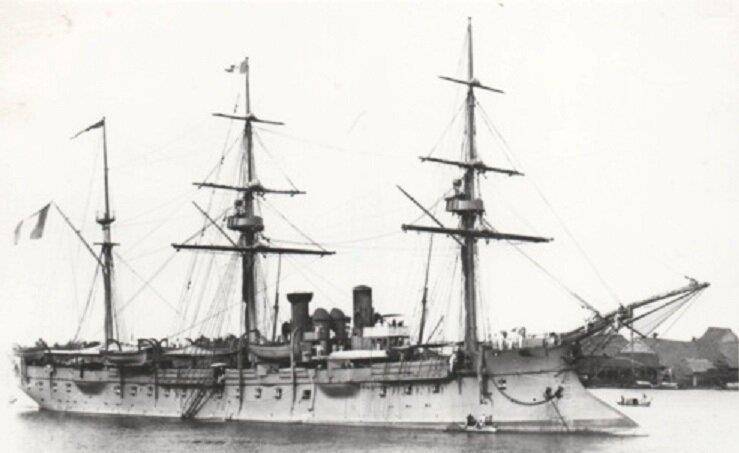 «Комодом» Шассёр непочтительно именовал «Триомфан». Бывший студент привстал и вытянул шею, разглядывая броненосный крейсер. Его низкий, массивный корпус, действительно напоминающий обводами этот предмет меблировки, маячил неподалёку от иностранных судов, выстроившихся в той части рейда, что считалась нейтральной – британских «Виджиланта», «Чемпиона» и «Сапфира», и американского корвета «Энтерпрайз».
