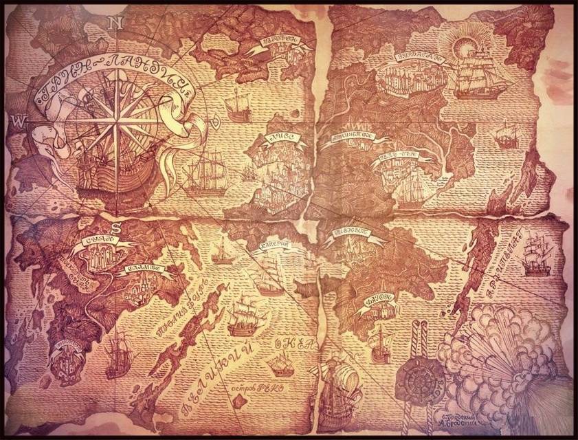 Конечно, и это достаточно условно – насколько мне известно, сам Грин, хоть и успел совершить путешествие из Зурбагана в Лисс (туда – морем, вокруг полуострова, на южной оконечности которого стоит городок Дагон; оттуда – сушей, по шоссе, которое проложено через Арлингтон и дальше, по горным ущельям, через перевал к Зурбаганской бухте) – но, не будучи профессиональным картографом, мог составить, разве что, весьма приблизительные наброски, без масштаба, с нарушениями пропорций, искажёнными очертаниями береговых линий, островов и прочих географических подробностей. Тем не менее, общее представление о Гринландии она дать могла – ине один поклонник творчества писателя мечтал совершить путешествие по изображённым на ней морям и землям – неважно, на парусной шхуне, в дилижансе, или верхом на крепкой лошадке, с полными припасов седельными сумками и карабином в чехле у луки седла.