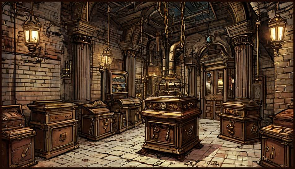 О паропанке, как и о родственном стиле клокпанк, поклонники которого вдохновляются пружинами, часовыми механизмами и прочими хитроумными устройствами эпохи Леонардо, напоминали и другие экспонаты коллекции мастера Гивса – секстаны, буссоли, амиллярные сферы и другие хитроумные приспособления, названия которых Казаков не знал. Все они были располагались многочисленных ящиках и стеллажах вдоль стен зала; копия же Источника занимала почётное место в центре, на широком, высотой примерно по пояс, дубовом пьедестале. Всё это великолепие освещалось полудюжиной масляных ламп, дававших тусклый оранжевый свет – окон в зале Коллекции не было вовсе, и все это вместе придавало ему облик чего-то среднего между лабораторией сумасшедшего учёного, сокровищницей местного Али-Аабы и средневековым склепом.