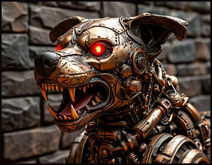 Остаток казаковской фразы заглушил протяжный скрип. Одна из собак – та, в которую стрелял Казаков, – повернула металлическую башку и уставилась на обидчика. В щелях глаз разгорались кровавые огоньки, блестящие поршни, заменявшие механической твари мускулатуру, с шорохом втянулись в цилиндры.