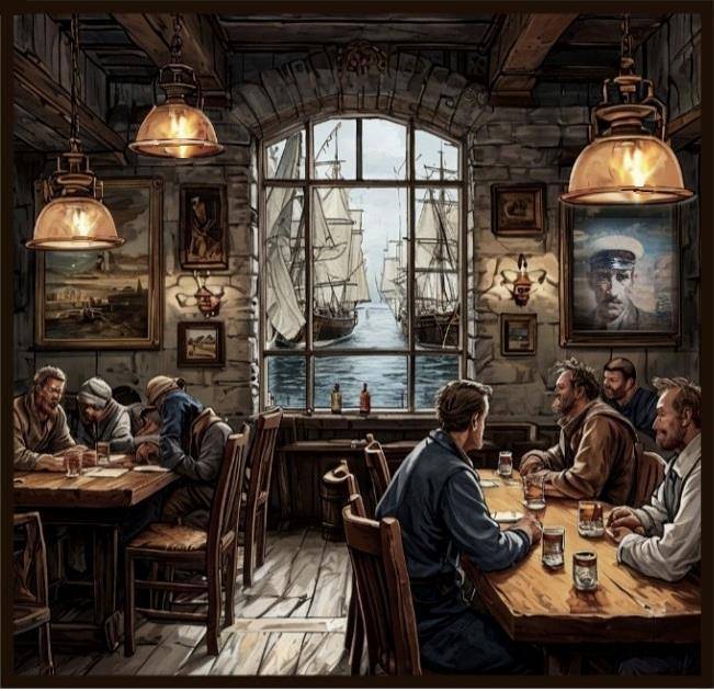 За соседними столами рявкнули так, что стёкла в большом, выходящим на гавань, окне задрожали.