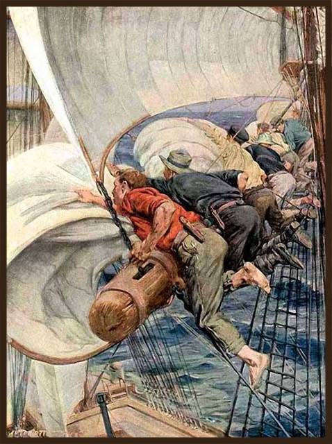 Засвистали боцманские дудки, матросы вскарабкались по вантам, разбежались по пертам и повисли, сверкая босыми пятками, над волнами, перегнувшись через толстое бревно рея. Огромное четырёхугольное полотнище фока – нижнего, самого большого паруса на первой от носа мачте – освободившись от притягивающих его к рею горденей, упало с рея тяжёлыми складками, и с громким хлопком развернулось, поймав ветер, несколькими секундами позже поймал ветер и фор-марсель, выгнулся упруго на штаге треугольник стакселя. Дзирта потянулась к кожаной пробке, закупоривающей амбушюр переговорной трубы.