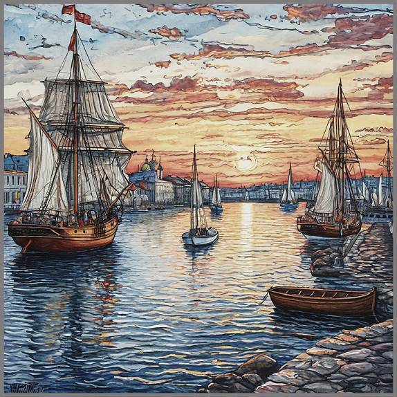 Сумерки ещё не сгустились, но лодочки мальчишек-фитильщиков уже замелькали возле бакенов «зоны прибытия», зажигая по одному фонари на их острых верхушках. И лишь благодаря этому Роман успел увидеть, как из призрачного, едва различимого на фоне далёкого берега вихря возник чёрный, массивный, похожий на утюг силуэт корабля.