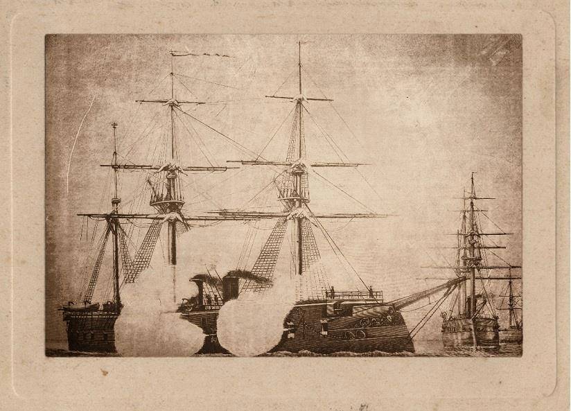 Такая реакция, хоть и далёкая от приличествующего капитану корабля хладнокровия, была вполне понятна. Стоило «Фильбанку дать первый залп, как 'Суан» взял с места с резвостью, способной сделать честь и моторной лодке. Густая пелена дыма из его трубы стлалась над самой водой, и в её разрывах Роман разглядел, что корпус броненосного тарана, и без того почти не возвышающийся над водой, осел ещё сильнее. Теперь над волнами возвышались лишь извергающая клубы угольной копоти дымовая труба, да бочкообразные надстройки, наполовину скрытые высоченным, разведённым на полном ходу буруном. Такой, прикинул Роман, наверняка съедает немалую долю скорости, на сейчас это уже неважно – тихоходу «Латру» даже с предельным напряжением машин, с заклёпанными предохранительными клапанами не развить такой скорости. Да и – смысл? Их единственная шестифунтовка и, тем более картечница, могут разве что поцарапать стальную шкуру броненосного тарана, а этого мало, чтобы остановить атаку…