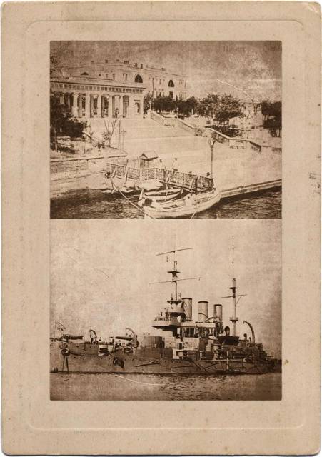 – Точно, она самая и есть! – подтвердил Казаков. – На заднем плане – Корабельная бухта и броненосец «Пантелеймон», который бывший «Потёмкин». Он единственный был с тремя трубами, остальные двухтрубные… Но тут другое интересно…Он выдвинул ящик журнального столика, извлёк из него большую лупу в латунной оправе и с деревянной рукояткой, и принялся разглядывать фотографию.