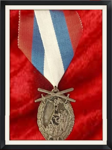 – Так я и думал! – сказал он спустя пару минут. – видите, у офицера на груди, слева медалька на ленточке? Качество поганое, деталей не разобрать, но, зуб даю – венок из ветвей, сверху– два меча перекрещенные, а в центре – солдаты и женская фигура с флагом.