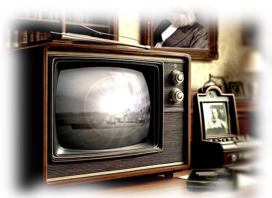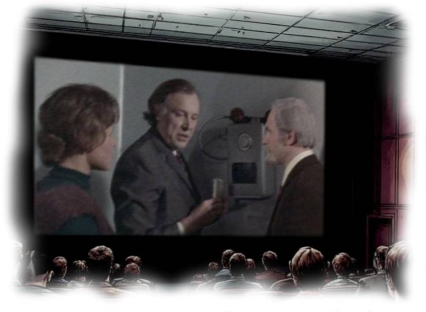 Он встал и с громким щелчком повернул верньер на панели телевизора – громоздкого, в деревянном корпусе, с маленьким выпуклым экраном. Экран засветился, пошёл полосами, и на нём возникло изображение военного корабля. Некоторое время ничего не происходило, потом судно оконтурилось пучками лучей и исчезло, оставив пустую водную гладь.