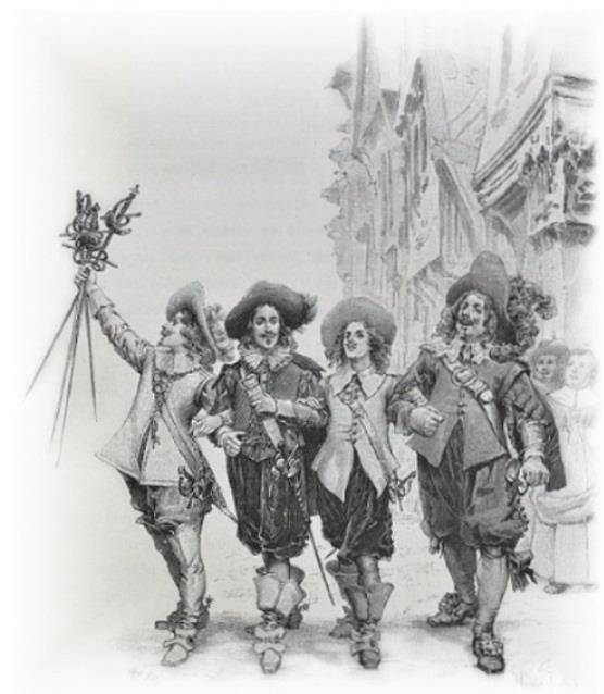 – А почему именно «Три мушкетёра»? – спросил один из них, высокий, лет шестнадцати, парень с нашивками третьего курса. – Нет, мы знаем, конечно, что Шарль был потомком какого-то там графского рода – но почему именно Дюма?