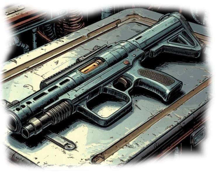 Эти простейшие и крайне надёжные устройства, напоминающее охотничье ружьё-переломку с выдвижным прикладом имело ствол-коротышку калибром в сорок миллиметров и могло заряжаться разными боеприпасами – от осветительных и сигнальных ракет, до пластиковых капсул с флуоресцирующей краской и гарпунов-якорей. Имелись в этом наборе и фугасные гранаты, начинённые мощной взрывчаткой; уж не знаю, кому это пришло в голову, но четыре штуки входили в стандартный боекомплект и, случалось, использовались по прямому своему назначению – например, на астероидах, особенно, ледяных, когда требовалось проделать в поверхности яму, не прикладывая для этого особых усилий. Не так давно был и другой случай, на станции «Лагранж» – сорвавшийся с креплений грузовой контейнер полетел прямиком на грузовой причал, где работало несколько человек, и пилот оказавшегося рядом «краба» (он как раз собирался спускаться на Энцелад и имел всю положенную экипировку, включая мортирку с полным боекомплектом), видя, что не успевает перехватить опасную железяку, влепил в контейнер фугасную гранату. Отчего тот изменил траекторию и разошёлся с перепуганными людьми на какие-то пару метров.