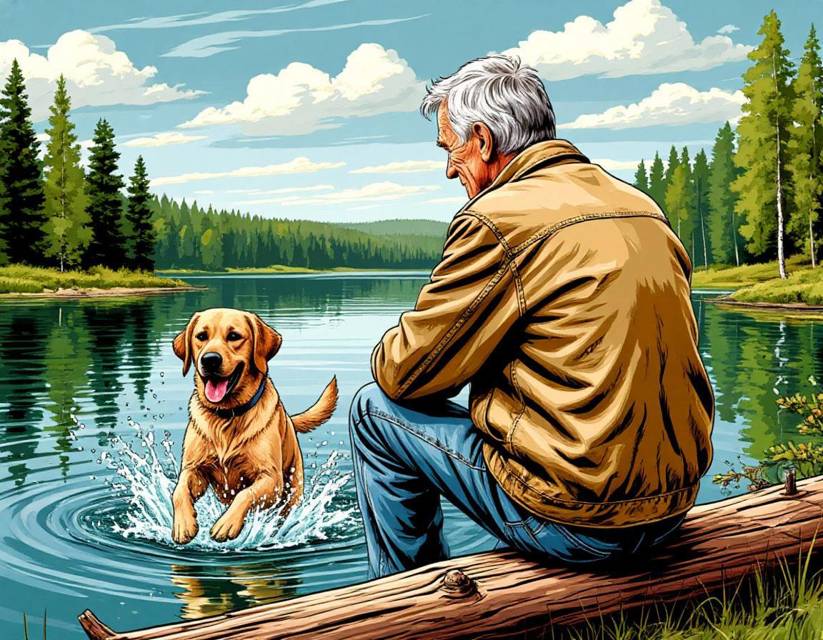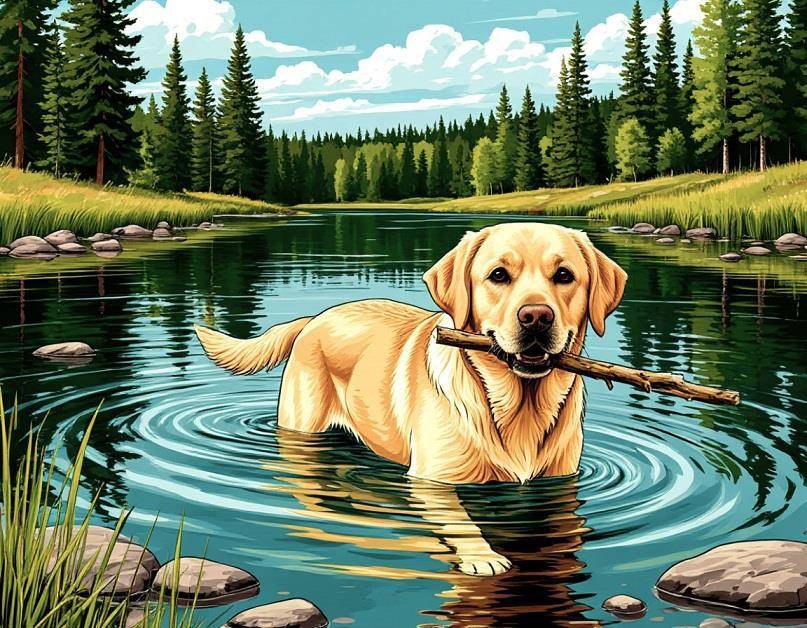 Бэйли, о которой шла речь, надоело валяться у нас в ногах. Она вскочила, потянулась, пошарила по окрестным кустам, и спустя минуту появилась оттуда с палкой в зубах, которую немедленно и ткнула мне в руки – «Хватит ерундой заниматься, займись делом!» Ничего не поделаешь – пришлось встать и с широким замахом запулить палку на самую середину озерка. Она ещё не успела коснуться воды, как собака с разбегу прыгнула в воду, подняв тучу брызг – и устремилась к вожделенному трофею. Плыла она как и всякий лабрадор, быстро умело, почти без всплесков, подруливая толстым «выдровым» хвостом. Я проводил её взглядом и уселся обратно на бревно.