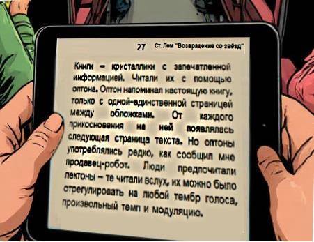 'Книги – кристаллики с запечатленной информацией. — начал он. – Читали их с помощью оптона. Оптон напоминал настоящую книгу, только с одной-единственной страницей между обложками. От каждого прикосновения на ней появлялась следующая страница текста…