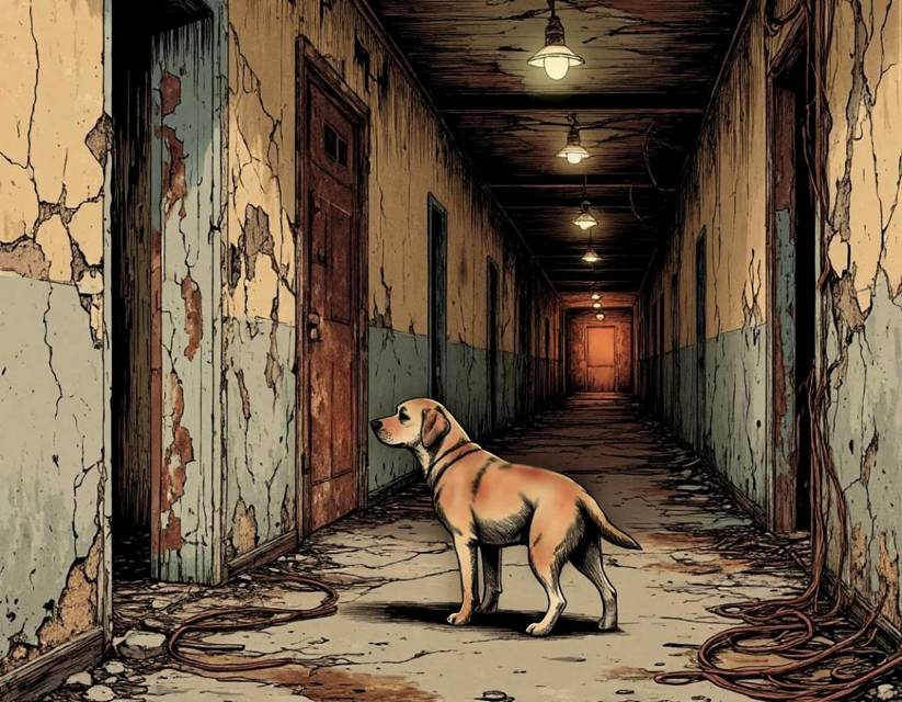 Я сделал несколько шагов вперёд. Здесь царило такое же запустение, как и на крыльце – разве что, не пробивались сквозь растрескавшийся, истёртый до белизны линолеум бледные пучки травы. Часть дверей была распахнута, двдоль стен змеились кое-где куски кабелей. Бэйли принюхалась, громко чихнула и потрусила по коридору, останавливаясь возле открытых дверей и настороженно принюхиваясь. Шерсть на загривке у неё улеглась, не было слышно глухого тревожного ворчания – похоже, никаких опасных сюрпризов спереди не было. По крайней мере – опасных с собачьей точки зрения…