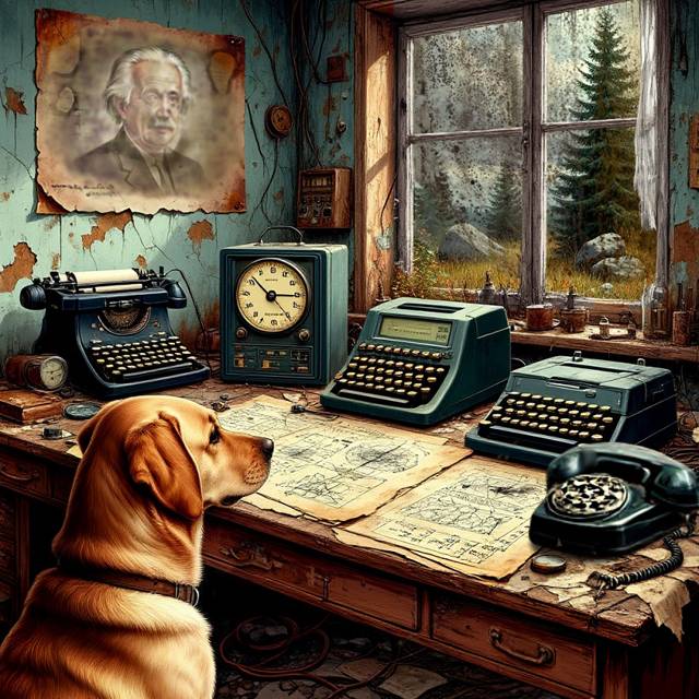Я огляделся по сторонам. Комната, где расположилась малая диспетчерская, хоть и была запущена до чрезвычайности – слой пыли и грязи на полу, заляпанные до почти полной непрозрачности оконные стёкла, осыпающаяся целыми пластами краска со стен, потолок в паутине трещин, чёрная плесень по углам – но всё же не производила впечатления разорённой и разграбленной. Ну не были тут люди почти полвека – как же ей ещё выглядеть? Время и сырость не пощадили даже портрета Эйнштейна на стене – создатель теории относительности был весь покрыт какими-то подтёками, неопрятными бурыми пятнами, выцвел кое-где до невыразительной серости.