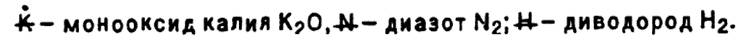 и т. п. Современные химические формулы этих веществ, в порядке их перечисления: H2O, K2CO3, As2O3, Sb2S3.