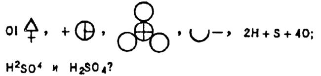 Иногда химики пользовались символами собственного изобретения, которых не понимал никто, кроме их авторов. Например, в статье 1820 г. можно встретить такую формулу: