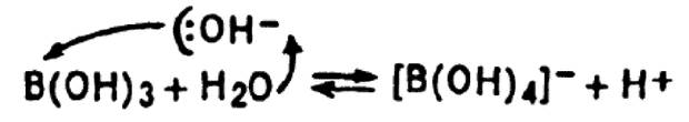 Борная кислота не выделяет протон, как все «обычные» кислоты, а отрывает от воды гидроксид-ион: она является кислотой Льюиса (см. 3.11).