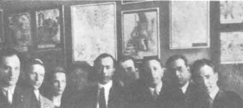 На снимке вверху; авторы этой книжки среди друзей-крокодильцев. Крайний справа – Б. Е. Ефимов, крайний слева – И. П. Абрамский. 1932 г.
