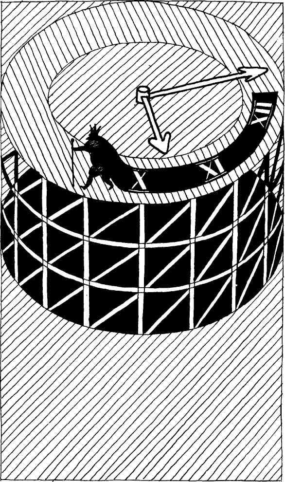 Э л ь. В короне их временных величеств живут серебряные птички блим-блям. Каждые четверть часа они вылетают из короны.
