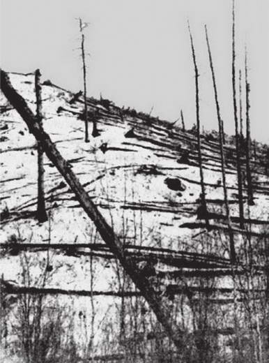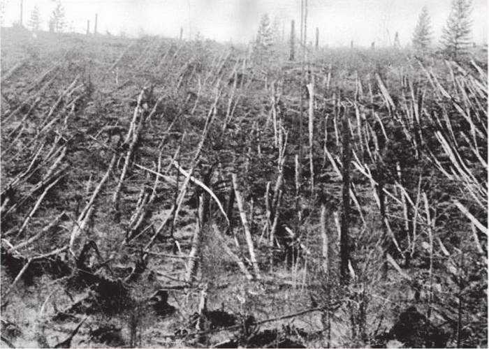Фотография сплошного вывала леса на месте падения Тунгусского метеорита