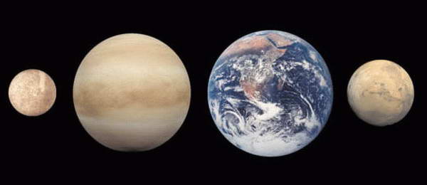 Планеты земной группы, слева направо: Меркурий, Венера, Земля, Марс
