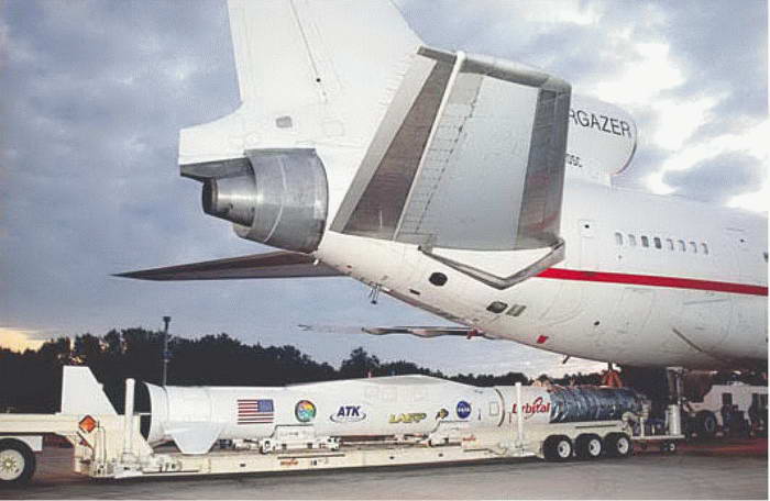 Ракету «Пегас» подвешивают к нижней части фюзеляжа самолёта-носителя