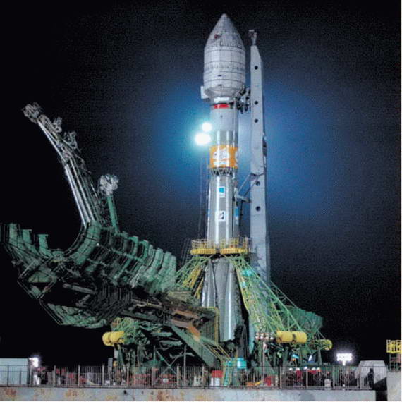 Ракета-носитель «Союз-ФГ» перед стартом на космодроме Байконур 28 декабря 2005 г.