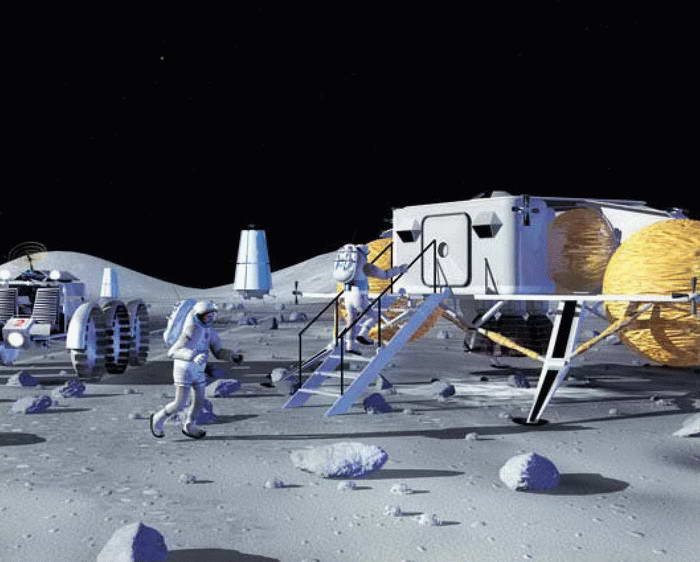 Так, по мнению художников НАСА, может выглядеть постоянная база на Луне