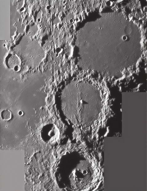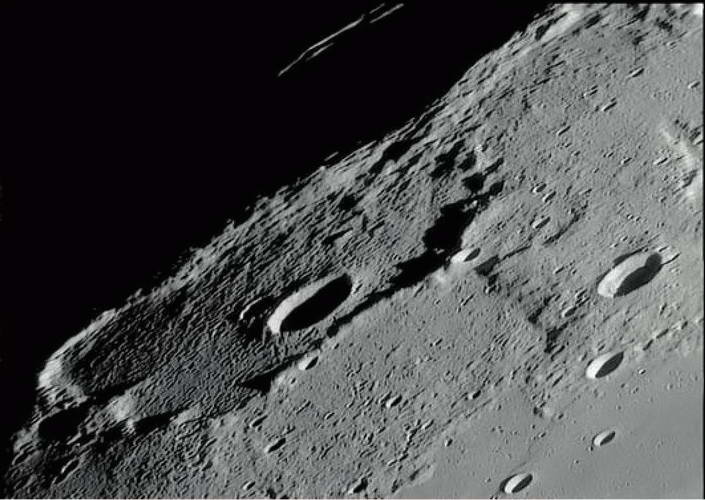 Цепочка крупных кратеров: Птолемей, Альфонс, Арзахель – расположена вдоль центрального меридиана видимого полушария Луны