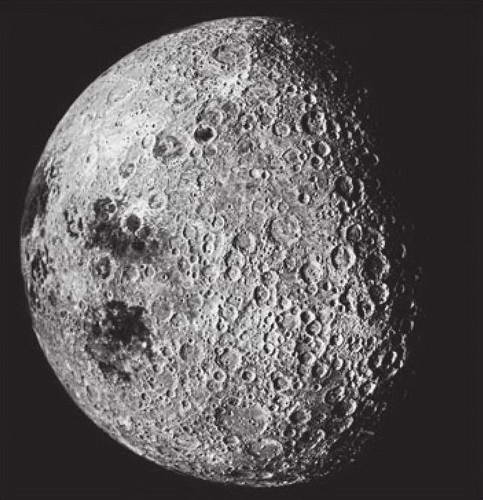 В центре фотографии обратная сторона Луны, а слева – участок видимой стороны нашего спутника. Отчётливо видны различия их рельефа