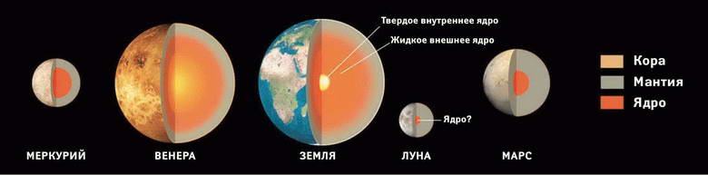 Ученые давно обратили внимание на существенное отличие Меркурия от планет земной группы. Таблица показывает сравнительную мощность внутренних слоев планет земной группы: