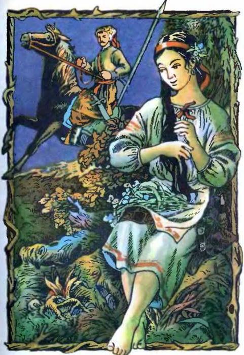 …Дріботить, вистрибує серед високої трави на галявині. Де ступить, з-під ноги порскає ромен, куди кине оком, там з’явиться деревій, або кривавник. Вона біжить, дивується і кричить: