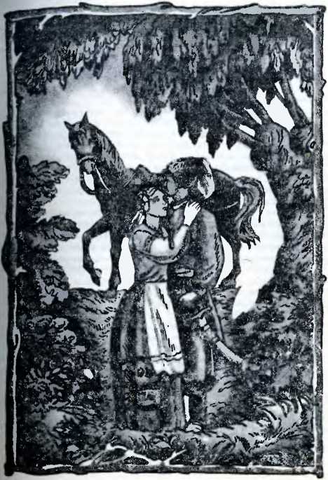 Вони кохались – він гнав у похід, а вона стояла на могилі, ламаючи руки, їй на губах пахне його палкий поцілунок. Терпнуть з одинокості її палкі груди. Вона не встигла ні побути з ним, ні наобійматися: западала ворохобна розлука. Кров заливає голову, а серце вистукує: живий чи убитий? Дні заходять в ночі, ночі заходять в дні – не світить сонце, не сяють зорі, пропав місяць. Вона виходить на могилу, стоїть, жде – не видно, не чути. Він прилітав, як вихор. Шапка набакир, чорний вус висівається… Вона кидалась до нього, розпростерши руки. Він зіскакував з коня і ставив її до себе, торкався пальцями її кіс. Вона дивилася на нього й доростала до його очей. Він брав її під свою кирею – ховав од людей своє щастя. Вони йшли, і трава була вища них. Він її цілував, вона приростала до нього, і їй в очі перекидалося небо зі всіма ясними зорями і молодим місяцем, а земля була килимами. Так вони кохались і так стали чоловіком і жінкою.