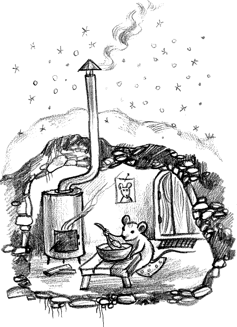Вы спросите, как же Маськин вышел из этого положения? Маськин срочно наладил производство маленьких печек-теплушек, коими бесплатно и обеспечил всех мышек в округе, всем вставил в норки крепкие дубовые дверки, а также организовал зимнюю столовую, где лично подавал им горячую манную кашу.