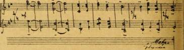 Полифония «Эдипа» не свободная и не динамическая. Она развивается йере гармоний, которые положены в основу оперы. Прежде были опыты сращивания разнородных тональностей. Тонал-» расширилась и углубилась до установления полярных гармонических к, в пределах которых она проявляется. В «Эдипе» это разренйтдась тем, свэбз-даое на вид голосоведение – насильственным, волевым порядком ся в строгую, аккордовую гармонию, окрашиваясь в эту гармонию и (нявьясь с'ней неуклонно.Контраяункт строится почти нсашочтегельно по , который его держит в подчинении. Создается некий идеальный син-контрапунктяческаго и гармоническаго начала, который вернее всего еделить как «гармонизованный контрапункт». Хочу сказать, что здесь гармонизация не мелодии, а всего контрапункта,