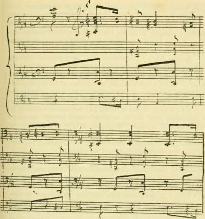 Это несомненно близкое сходство ясно показывает песенный лад оркестра в «Петрушке».